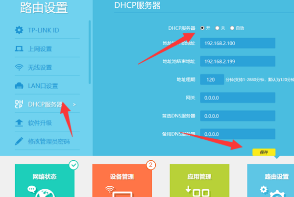 第六步、勾选开启DHCP功能点击保存,如下图所示: