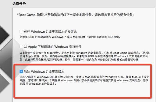 5、U盘刻录完成后再次打开boot camp助理,勾选第三个。