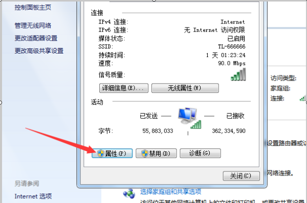 3、在打开该无线网的名称后点击弹出对话框中的属性选项,进入无线网了属性设置界面。