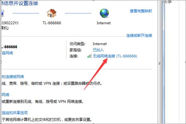 2、在进入网络共享中心后点击需要设置的无线网名称。