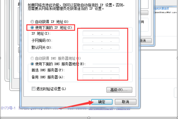 5、在进入设置界面后,点击页面上的使用下面的IP地址,并在对话框中输入合适的IP地址,并点击确定选项保存设置即可。