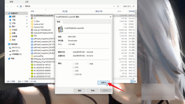 3、点击放回原处:在快捷设置设置菜单里面点击“放回原处”即可恢复文件至原位置。