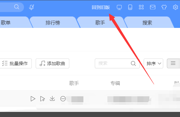 1、首先电脑上打开酷狗音乐;接着点击主界面上方的回到旧版选项。