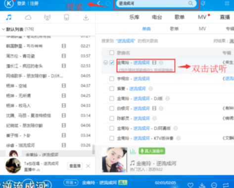 第三步、打开电脑上的酷狗音乐播放器,然后找到需要传输的歌曲,然后点击试听: