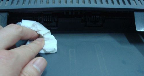 5、有时候时打印机的出纸口的滚轴也会让打印机卡纸,可以用吸水纸蘸些水,把滚轴清理一下,避免打印机卡纸。