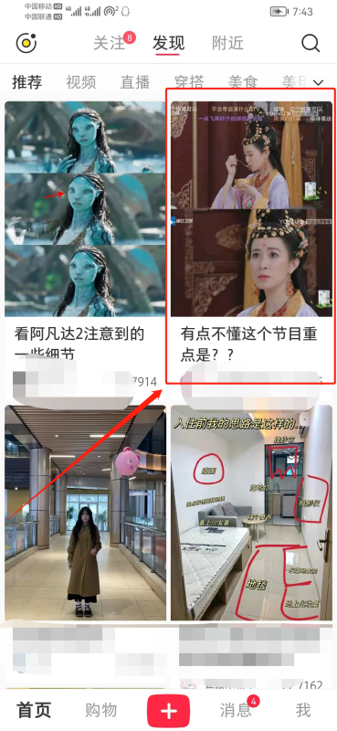 1、打开小红书,找出你想查看的博主,如图我想查看这个博主发的笔记,直接点击她的这篇内容;