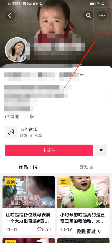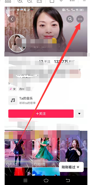 2、进入对方的主页,点击右上角的三个白色点点;