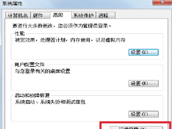 4、在弹出的新界面中,在下方选择“环境变量”。
