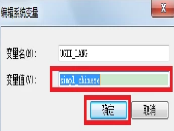 6、将变量值从”English“改为"simplchinese",点击”确定“。