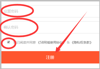 4、然后输入需要设置的密码,勾选使用协议,点击“注册”按钮。