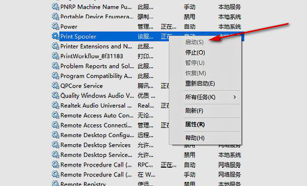 6.返回到该服务将启动printspooler,就可以解决无法打印72的问题了,如下图。