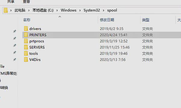 5.如下图所示,删除打印机中spOOL下的所有文件。
