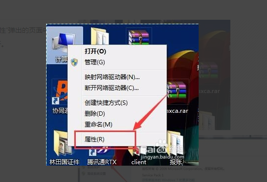 1、首先,右键我的计算机,选择“属性”:
