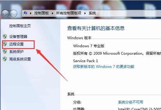2、然后,在弹出的页面中选择左边的“远程设置”打开: