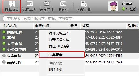 3、接下来就可以选择多台在线主机,点击上方的“屏幕查看”,或者通过右键单击菜单的方式选择“屏幕查看”,都可以进入到屏幕查看页面。