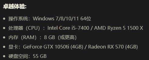 题中游戏对台式电脑配置要求还是有点高的,推荐配置要求酷睿I5以上处理器、4G以上内存、GTX660或HD7850以上独立显卡,更高配置要求七代酷睿I5或一代锐龙R5以上处理器、8G以上内存、GTX1050TI或RX570以上独立显卡(可见下图)。至于玩的时候会卡,还要看具体是什么配置,选择是否需要升级现有配件亦或是新装主机,现在台式机独立显卡的价格还处于高位。