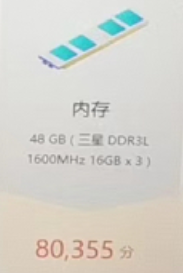 48G内存。这个使用了3根16GDDR3L的三星内存。这个应该是报废服务器内存,普通家用DDR3内存,一般就到8G,只有服务器DDR3,才有16G这个容量规格。