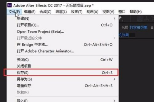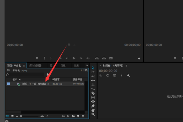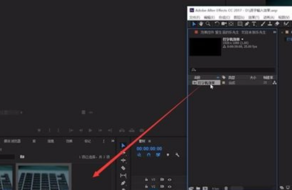 4、将合成(打字机效果)拖拽至Pr的项目面板中,再拖入时间线上。