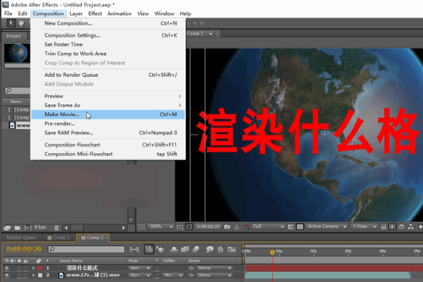 1、首先打开AE软件做好特效素材,在进行渲染输出保存的时候,可以利用快捷键“ctrl”+“M”进行输出设置。