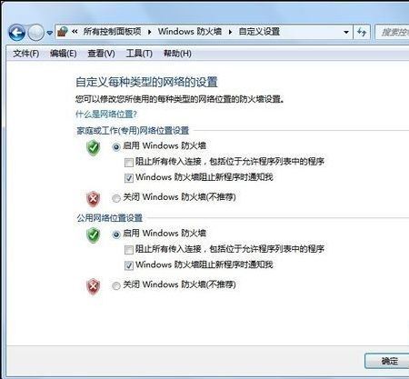 在打开的控制面板中,找到“Windows防火墙”选项,并双击打开,选择“关闭(不推荐)”选项,点击“确定”按钮,关闭防火墙。
