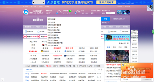 笔记本能够上网,然后打开笔记本自带的ie浏览器,然后在浏览器地址栏输入www.baidu.com,进到百度之后就可以选择需要的百度产品了在电脑上怎样下载百度网