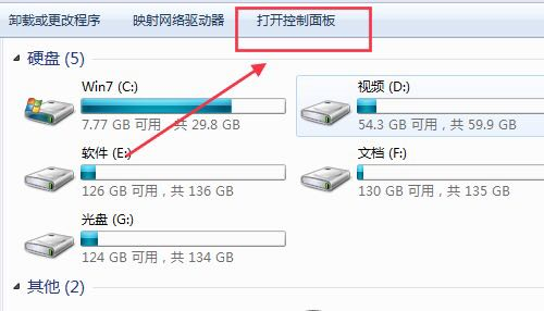 2、点击打开控制面板,如下图所示。