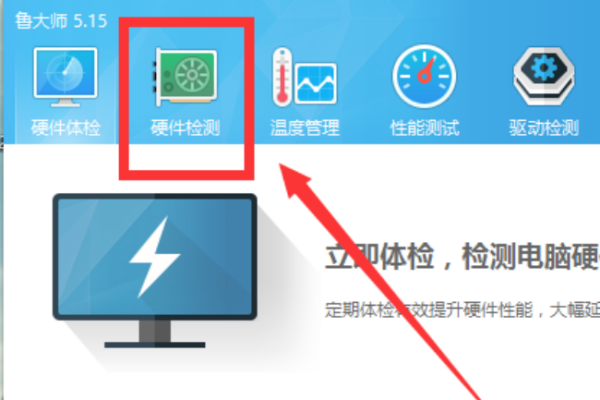 2,接着,在鲁大师软件的界面中点击“硬件检测”,点击打开。