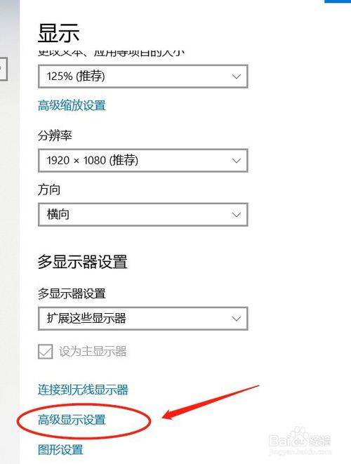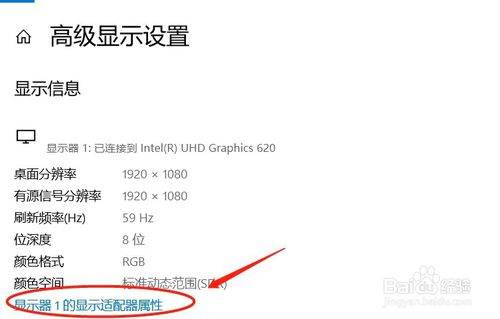 8、如果以上方法都试了,还是不行,右键电脑桌面空白处找到显示设置,在弹出的框中找到高级显示设置,然后找到显示器显示适配器属性,如图三所示,点开它,