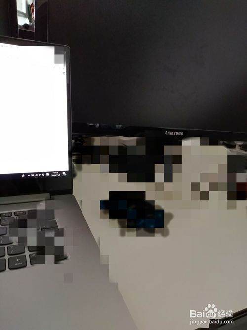 1、如下图所示,显示器已经和笔记本电脑链接,但是显示器黑屏没反应。