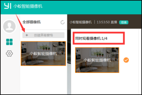9、另外对于有多台小蚁智能摄像机的用户来说,可以使用创建屏幕窗格的功能来同时查看多个画面,目前可以看到同一个窗格最多支持4台小蚁智能摄像机,你也可以创建多个窗格。