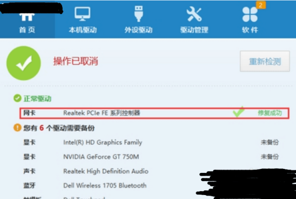 网卡修复是比较快的,我们等待一会就修复好了,这样我们就可以把驱动软件删除了。