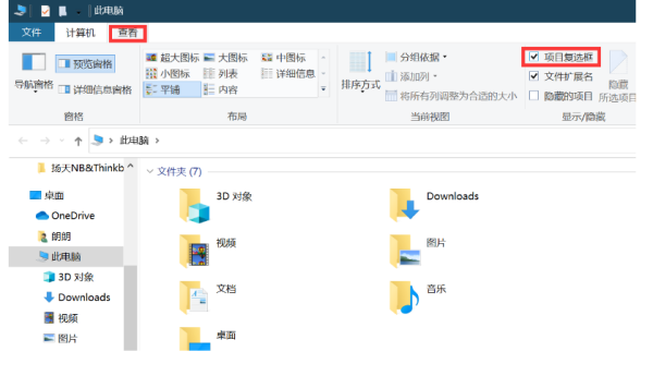 打开此电脑,点击此电脑左上角的查看,取消勾选项目复选框即可。