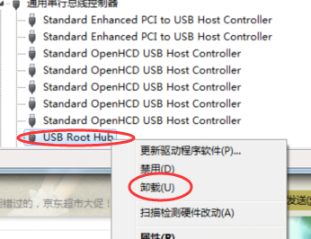 3、卸载完成后,设备管理器里面会出现未知设备,右键更新,选择自动更新,未知设备消失。如图: