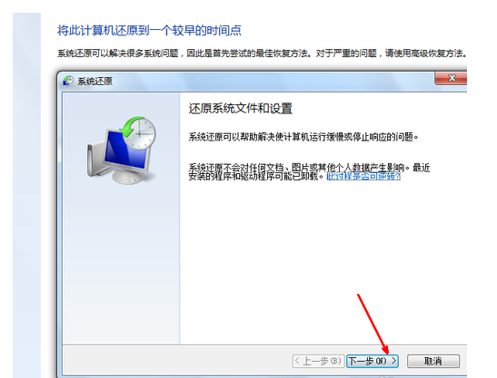 4.然后会开始还原文件和设置的向导,你只需要按照向导的提示做就好了。直接点击下一步;
