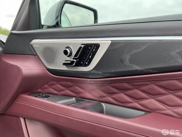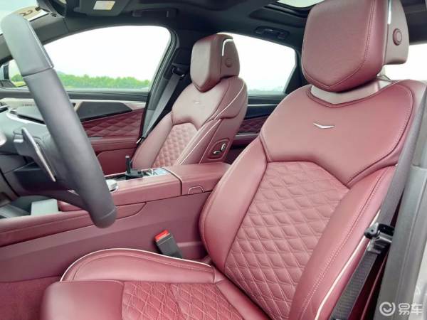 除了中控区域以外,座椅和门板的样式也有了很大的改变。比如座椅表面采用菱形格纹配撞色缝线的设计,并且前排座椅有三挡加热/通风、座椅震动提醒、内嵌音响的驾驶座头枕等功能。