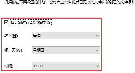 7.在下方点击更改计划,选择备份的频率,然后依次点击确定、保存设置并运行备份就行了。这样就解决了电脑备份文件的问题了。