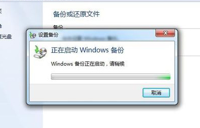 3.进入“备份或还原文件”栏,在备份一栏中点击“设置备份”按钮,弹出设置备份的启动对话框,稍等一会就会启动备份。