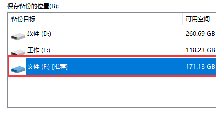 4.在下方任意盘符中选择备份文件保存的位置,然后点击下一步。