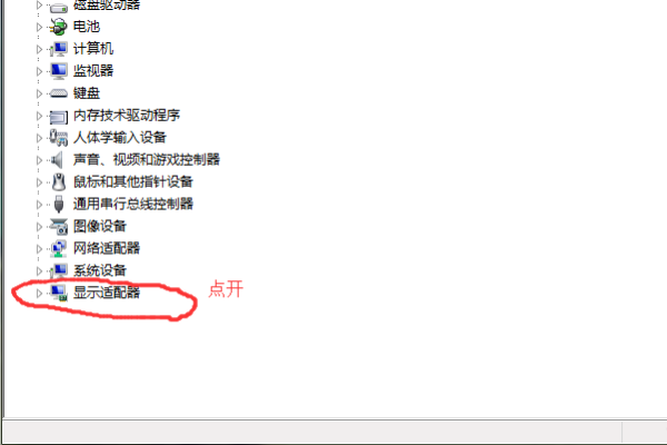 2、在设备管理器点击之后会出现一个新的页面,在页面中找到“显示适配器”选项栏并且点击“显示适配器”;
