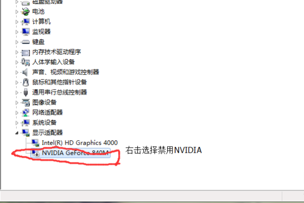 3、在跳入的另一个页面,然后找到NVIDIA,再用鼠标右键禁用。