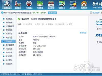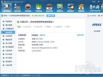 第二步:打开鲁大师软件可以看到电脑的详细配置,解决怎么看电脑配置问题。各主要硬件的工作温度,以及是否需要节能优化等,功能还是比较出色的。