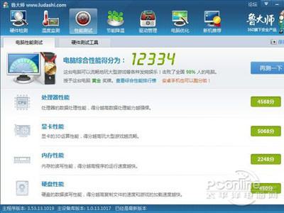 第三步:如果不懂看电脑配置的详细,可以先点击性能测试,检测一下电脑的配置达到哪个级别。