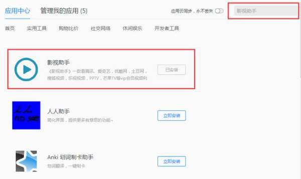1、首先第一步,在电脑上安装一款QQ浏览器,然后再点击浏览器右上角的“+”号,在右边搜索“影视助手”并进行安装!