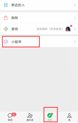 五、这时回到手机微信“发现”页,刚才添加的小程序功能就在该页内,点击即可打开。