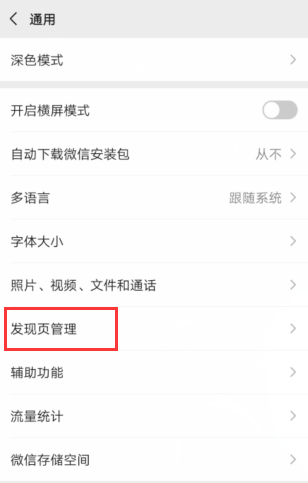 三、接着找到“发现页管理”这一项,点击打开该项。