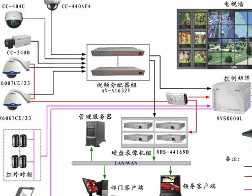 1、监控系统分前端和后端。 2、顾名思义,前端是指监控摄像头;后端是指机房端(有硬盘录像机、解码器、矩阵等)。视频监控系统是由哪些设备组成的