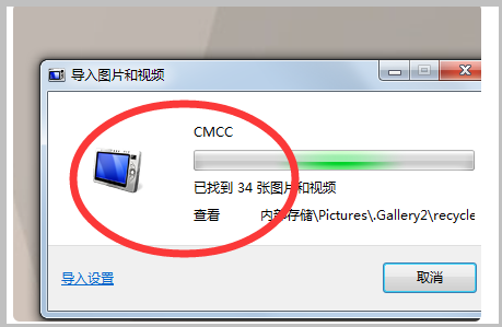 3、在电脑中会弹出提示框,选择“倒入图片和视频”。