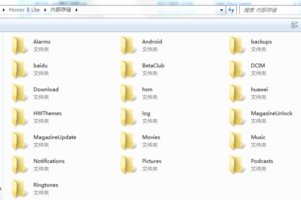 (3)选择MTP连接方式后,通过电脑可以访问手机里照片(DCIM)、视频(Movies)、图片(Pictures)、音乐(Music)等目录,如下图所示: