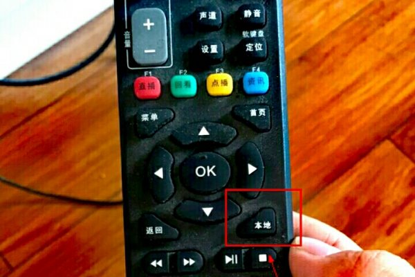 2、拿出机顶盒的遥控器,找到【本地】按钮并按下它。