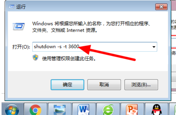 2、然后,弹出“运行”的对话框,在搜索框汇总要输入关机的命令程序:“shutdown -s -t 3600”(一小时关机指令)。